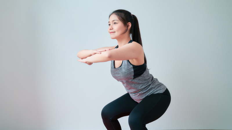 スクワットは、全身の筋肉の約70%を占める下半身の大きな筋肉を効率よく鍛えられるため、全身の血流改善に効果的です。体幹の筋肉も鍛えられるため、猫背改善にもつながりますよ。