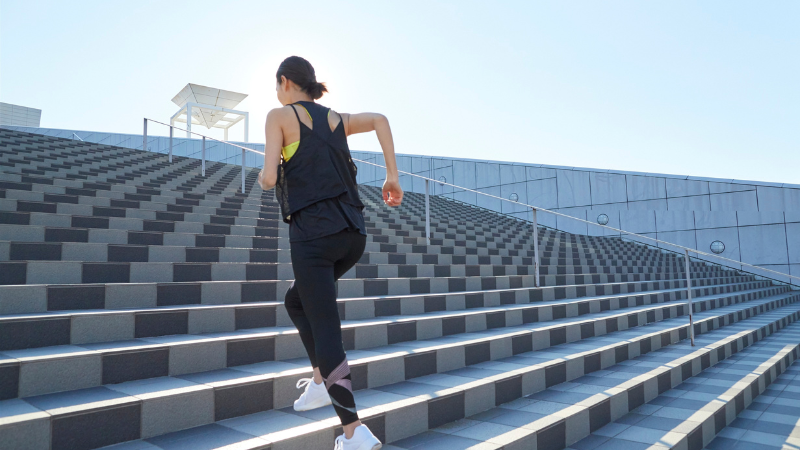 家の階段や、雑誌を束ねた台でOK。10分も昇り降りすれば、汗ばむほどの運動量になります。