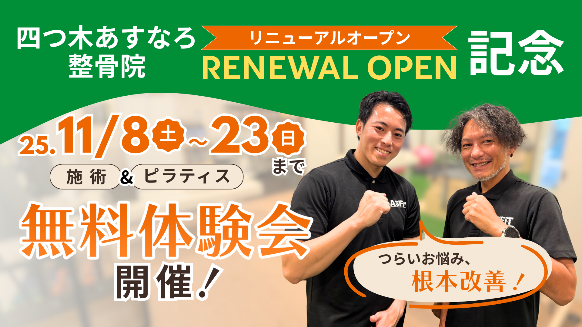 導入を記念して、11月8日(土)〜23日(日)まで「施術&ピラティス無料体験会」を開催します。