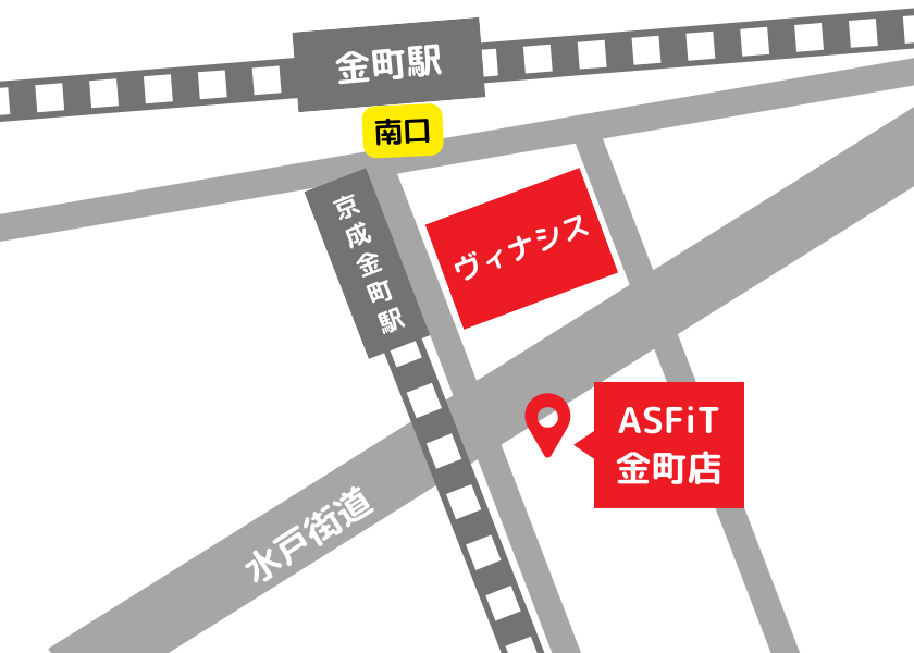 ASFiT金町店は金町駅から徒歩3分となっております。